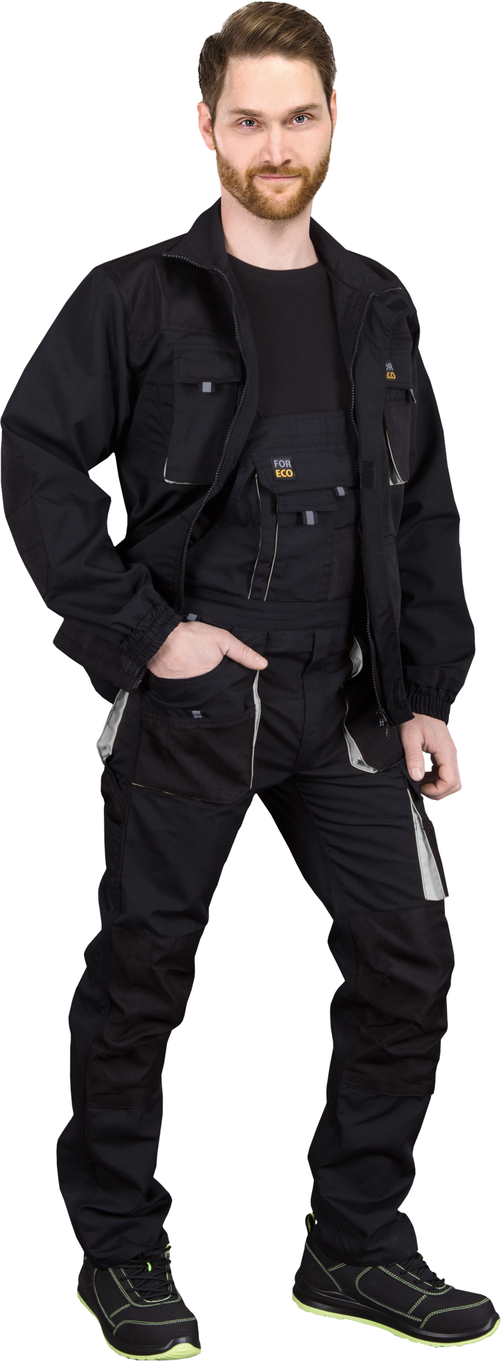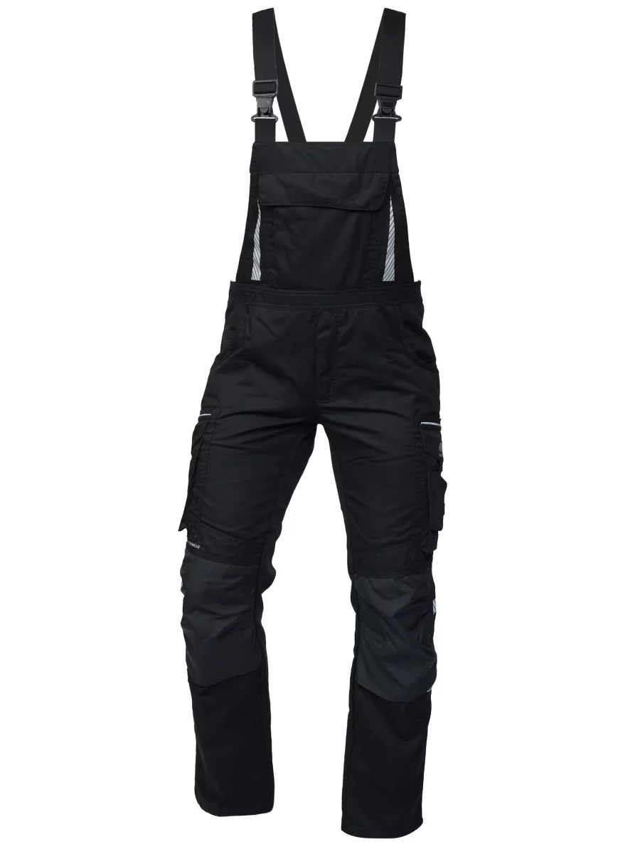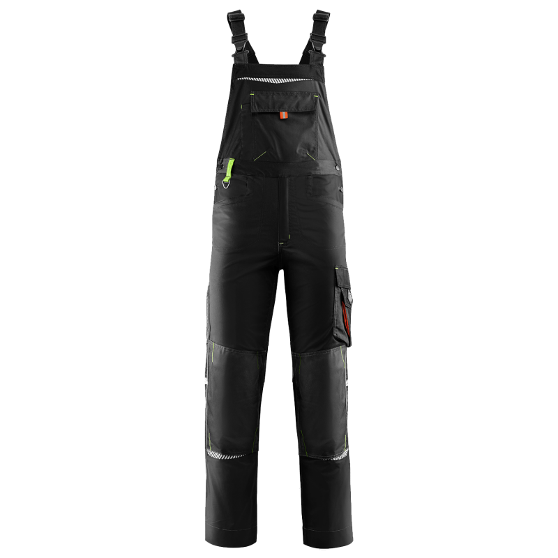 Stenso Arbeitslatzhose mit multifunktionalen Taschen und verstärkten Knien in schwarz mit grünen Details