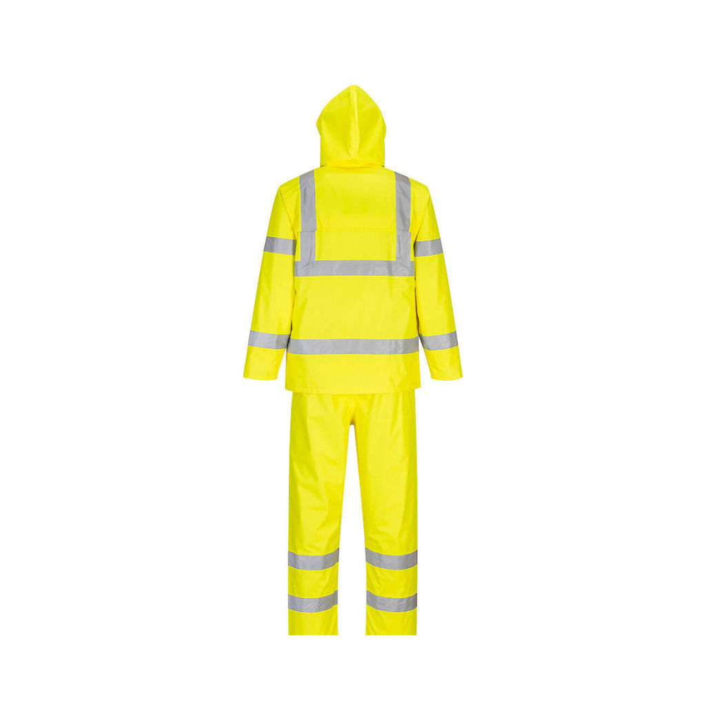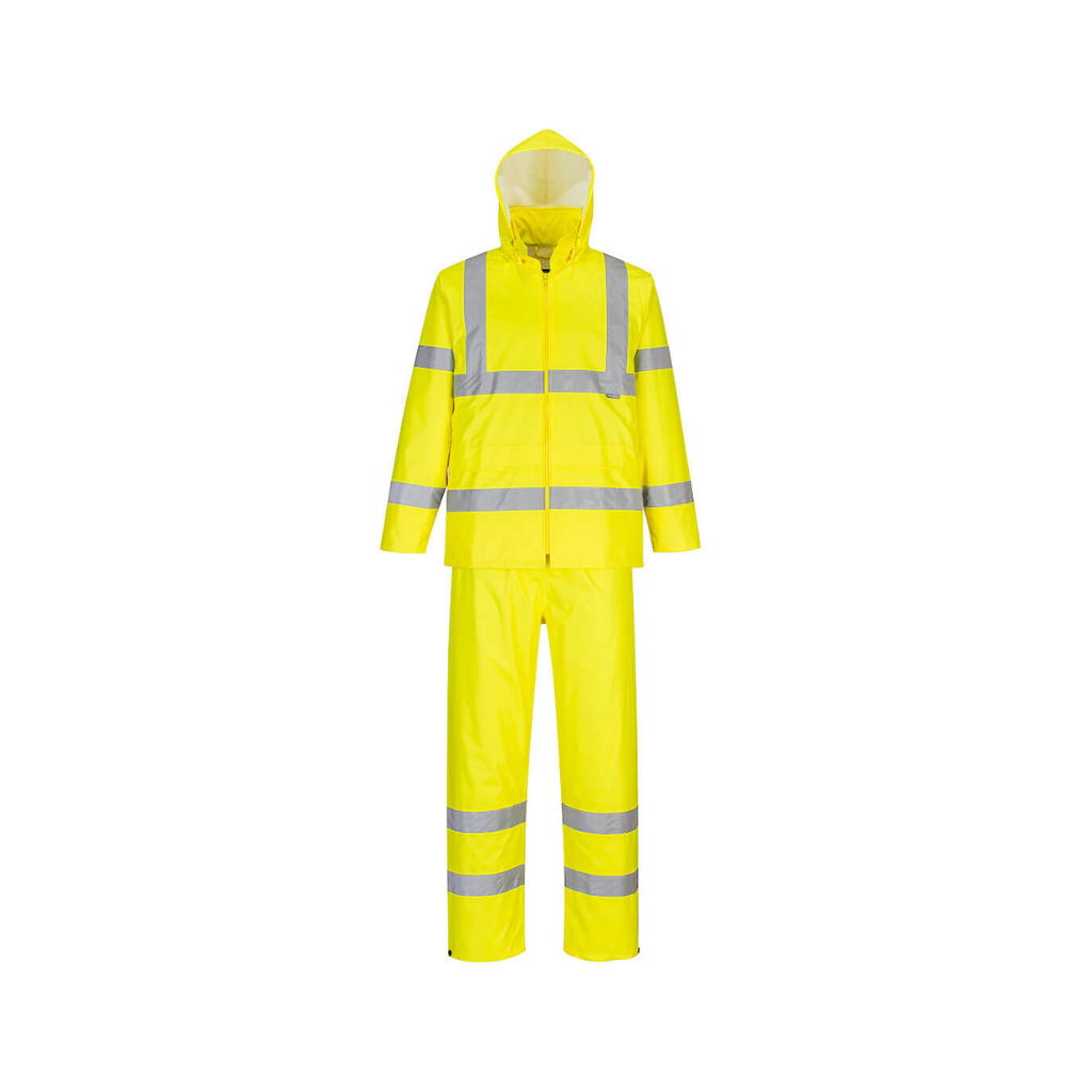 Der wasserdichte Regenanzug H448 bietet hervorragenden Schutz bei schlechten Wetterbedingungen und sorgt dafür, dass der Träger stets sichtbar, sicher und trocken bleibt. Dank der hochwertigen, umweltbewussten Gewebeausrüstung und der verschweißten Nähte bietet dieser Regenanzug ein außergewöhnliches Preis-Leistungs-Verhältnis. Zudem lässt er sich leicht zusammenrollen und platzsparend aufbewahren, wenn er nicht gebraucht wird.