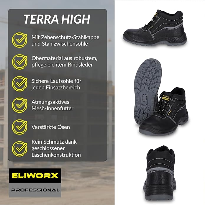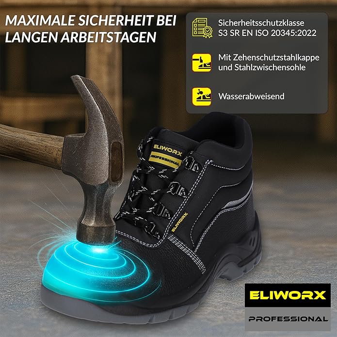 ELIWORX Sicherheitsschuhe Herren S3 SR – Arbeitsschuhe aus Rindsleder – Terra High – mit Stahlkappe & durchtrittsicherer Sohle – rutschhemmend & atmungsaktiv