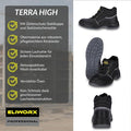 Mit den ELIWORX Terra High Herren Sicherheitsschuhen bekommst du ein Paar Arbeitsschuhe, das kompromisslos Schutz, Komfort und Qualität vereint. Perfekt für Profis, die Tag für Tag in anspruchsvollen Umgebungen arbeiten.