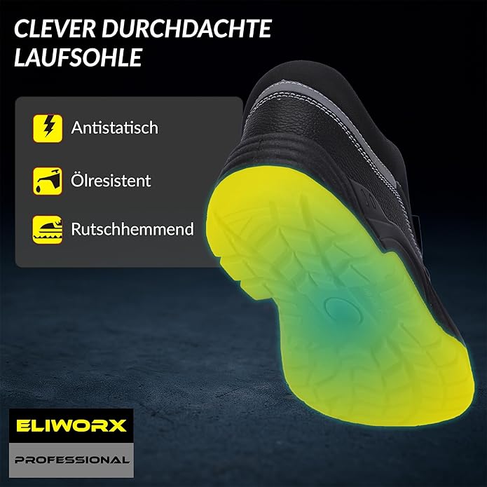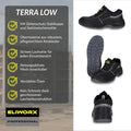 Die ELIWORX Terra Low Sicherheitsschuhe vereinen maximale Sicherheit, hohen Tragekomfort und strapazierfähige Qualität. Ob Bauarbeiter, Handwerker oder Lagerist – mit diesen Arbeitsschuhen bist du bestens geschützt und bleibst auch bei langen Tagen beweglich und komfortabel unterwegs.