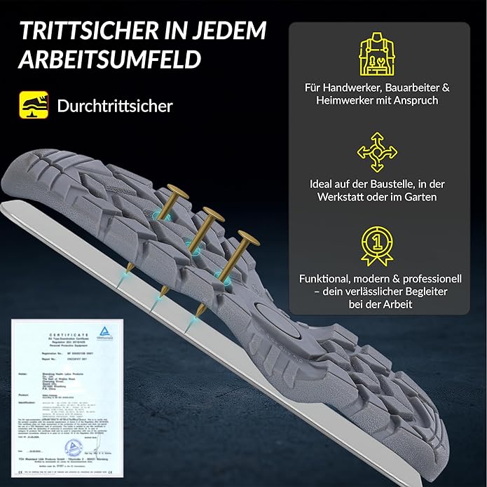 Schutz: Stahlkappe & durchtrittsichere Stahlzwischensohle