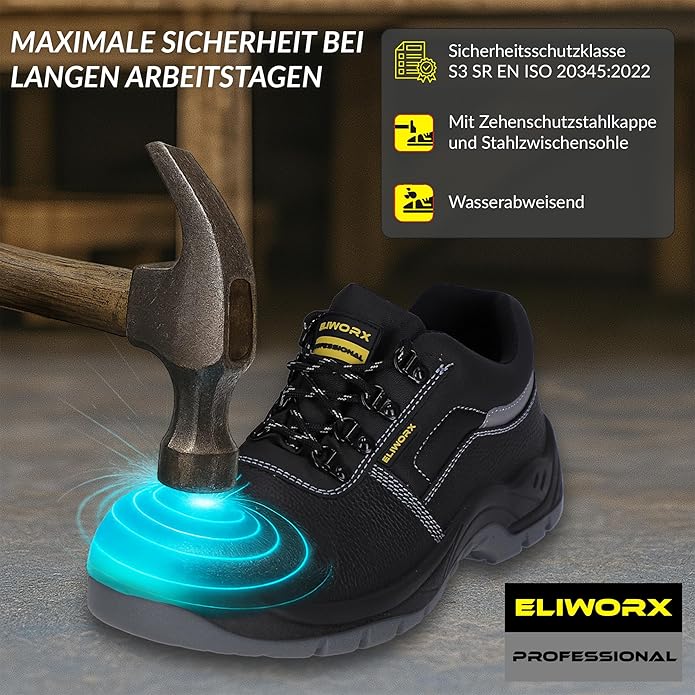 ELIWORX Sicherheitsschuhe Herren S3 SR – Arbeitsschuhe aus Rindsleder – Terra Low – mit Stahlkappe & durchtrittsicherer Sohle – rutschhemmend & atmungsaktiv