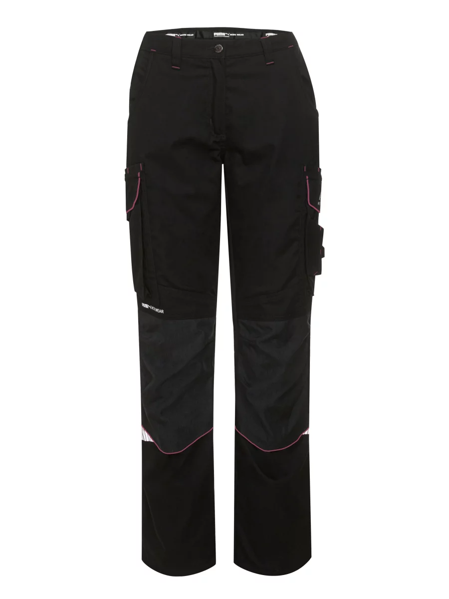 Schwarz mit pinken Details: Für diejenigen, die ihren Arbeitsalltag mit einem Hauch von Femininität aufpeppen möchten, ist die schwarze Hose mit pinken Details genau das Richtige. Die kontrastreichen pinken Akzente setzen modische Highlights und verleihen der Hose eine frische und lebendige Note. Dieses Design zeigt, dass Funktionalität und Mode Hand in Hand gehen können.